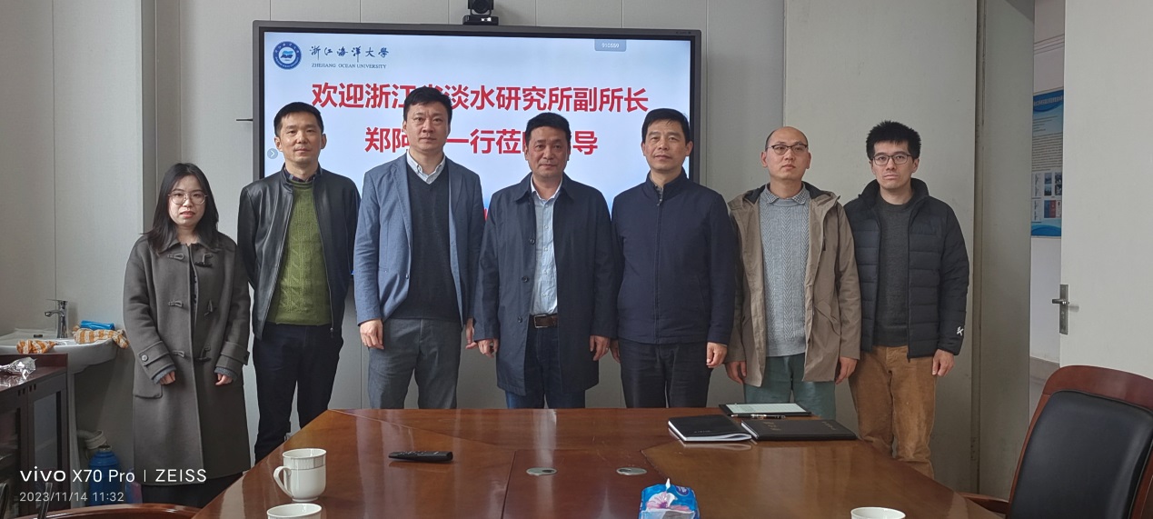 11月14日上午,1997届海洋渔业专业校友、浙江省淡水研究所副所长郑阿钦一行6人来中文av 调研。学院院长王迎宾、党委书记虞浩臣等陪同调研。