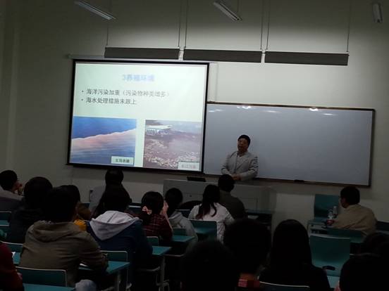报告会上,王春琳教授向大家介绍了智慧海水养殖系统的原理及其发展的现状。同时,他还详细介绍了水产养殖行业的整体现状和其的未来发展的情况。师生对王教授的报告听的入神,同时也是受益匪浅。