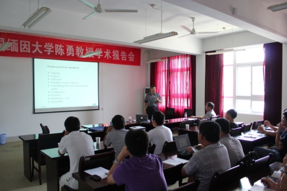 2013年6月19日,美国缅因大学陈勇教授在浙江海洋学院西校区30号楼6楼会议室作了题为《如何撰写科技论文》和《渔业监测系统设计与建立》的报告。中文av