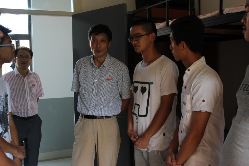 的学生。在寝室,他的亲切感染了同学们,交谈过程中笑语连连。周书记关心同学们的身体,以自身经验告知锻炼的方法。同学们也积极地把自己的建议和想法向周书记反映,周书记承诺会把这些意见带给学校。最后他祝同学们学习愉快,争取全面发展。