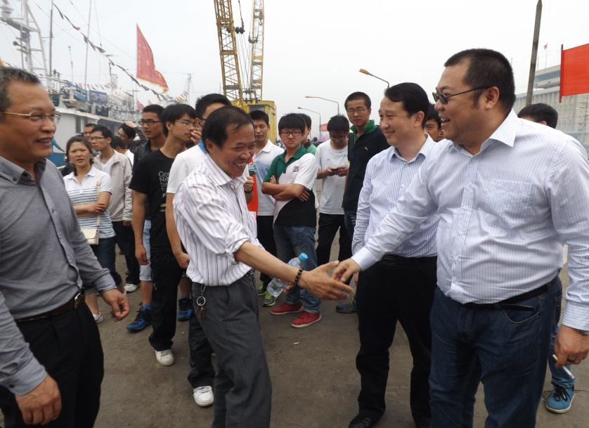 5月15日,A12海渔班43名同学在海渔系郑基老师、臧迎亮老师带领下,来到开拓我国远洋鱿鱼钓产业的首家企业----中国水产舟山海洋渔业公司进行实地见习。舟山海洋渔业公司总经理胡世宝,副总经理陈剑华等公司领导热情接待了我校师生,并同郑基老师进行了亲切交谈。