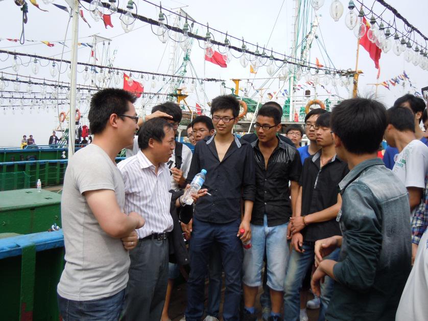 通过本次见习,同学们对远洋鱿鱼钓渔业有了直观的感性认识,对自己的专业有了较为清晰的理解。最后,在鞭炮声中大家一起目送舟山海洋渔业公司20多艘灯光鱿鱼钓船扬帆远航,开始2013年为期6个月的北太鱿鱼钓作业。