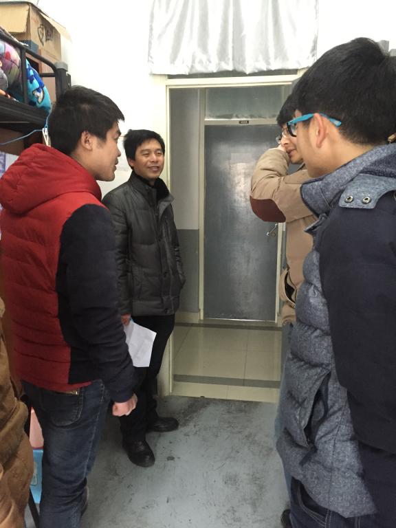 党委副书记虞浩臣老师与辅导员金枫老师在学生干部陪同下,共同走访了学院2011级毕业生的全部男生寝室和部分女生寝室。