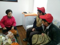 从社区工作人员口中我们得知,在这里有一部分老人是真正的“三无对象”,即“无劳动能力、无生活来源、无赡养人”,他们希望志愿者们的到来能给这些老人送去温暖。来到社区后,老人们便情不自禁跟我们聊起来,从他们的儿童时代聊到他们与我们年纪相仿的时代,聊到现在他们的生活等等,整个过程特别温馨、融洽。在欢快祥和的气氛中,志愿者用炽热的爱温暖着每一位老人,主动与他们拉家常,和他们一起做游戏,给他们表演,最后志愿者们在每一位老人的家里为他们贴上对联,贴起窗花。