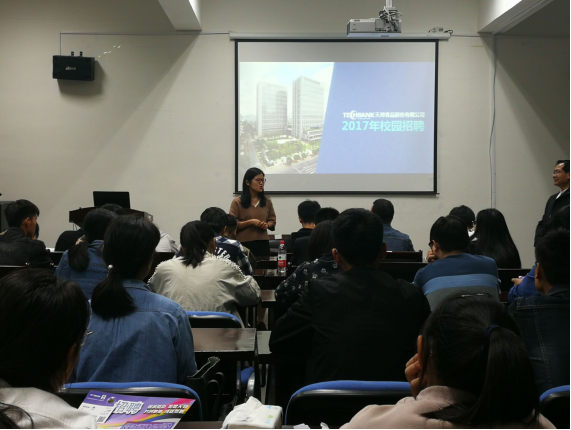 长峙校区海科楼263召开了天邦食品股份有限公司招聘宣讲会。本次活动主要面向学院全体本科应届毕业生与研究生,此外部分15、16、17级感兴趣的学生也参与了此次活动。会议主讲人为人力行政部总经理助理王女士。