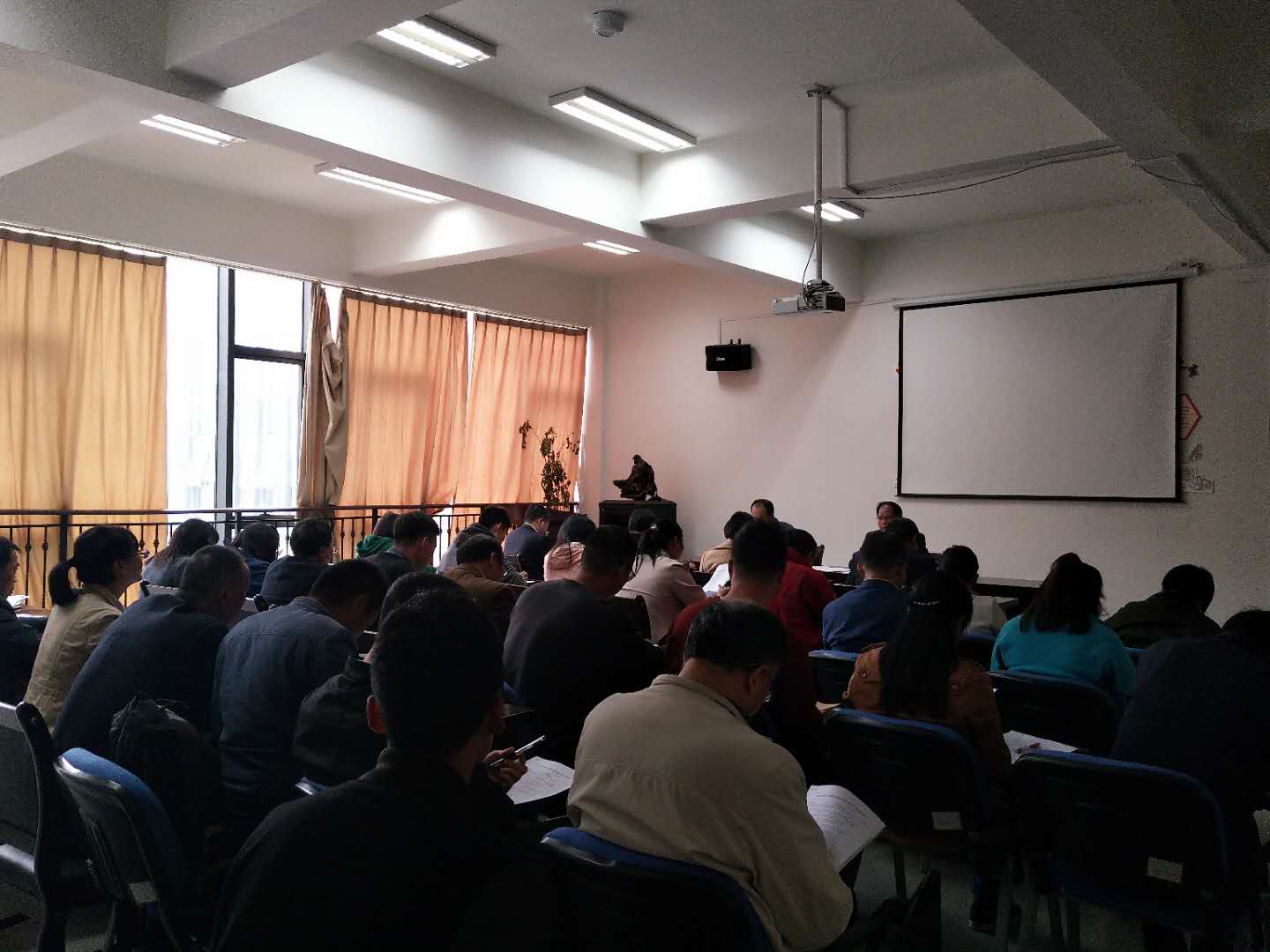 在海科楼263召开学院教职工大会。会议由俞存根院长主持,姜华帅副书记传达相关会议精神。