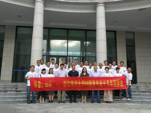 渔业学院99渔本班毕业15周年同学会在舟山举行。该班31名同学除3名同学因紧急事件无法参与外,28名同学重聚一堂,共话青春。