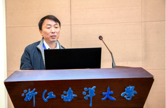 渔业系黄六一教授、中国水产科学院东海水产研究所石建高研究员、东京海洋大学尤鑫星教授、浙江省海洋水产研究所朱文斌教授、中国水产科学院东海水产研究所冯春雷副研究员、浙江省海洋水产研究所蒋日进教授、浙江省农业农村厅副巡视员兼浙江省渔业经济学会副会长严寅央等分别作了题目为《减少海洋渔业对环境影响的全球战略和技术》《南极磷虾资源开发利用研究进展》《拖网网板水动力研究》《渔用新材料的研发及应用》《基于人工智能技术的高升阻比网板的开发研究》《迈向基于科学的渔业管理——浙北渔场梭子蟹限额捕捞试点》《浅析渔业调查船的科研融合平台作用》《浙江近岸鱼类产卵场的调查与选划》《现行渔业政策与法规评述》的主题报告。
