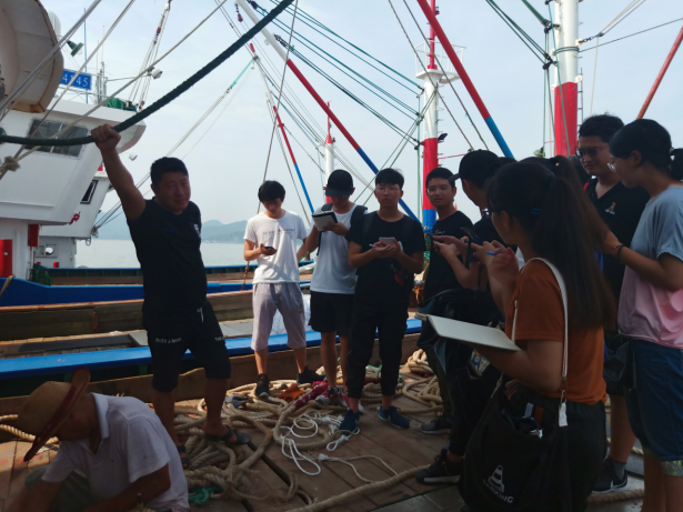 蚂蚁岛实习小组主要调研了蚂蚁岛目前的渔业发展情况。在渔业生产服务站蒋培军主任的安排下,同学们访谈了当地的渔船船长,深入了解了蚂蚁岛渔村的作业方式、渔具渔法以及经济效益等,并参观了创业基地,学习了蚂蚁岛人艰苦创业的历程,感受"蚂蚁精神"的可贵。