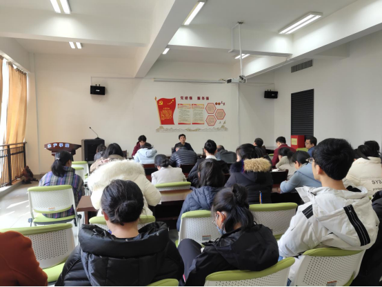 2021年3月4日下午,中文av 在海科楼263报告厅召开全院教职工政治理论学习会。会议由院党委副书记虞浩臣老师主持,全院教职工参加本次学习会。
