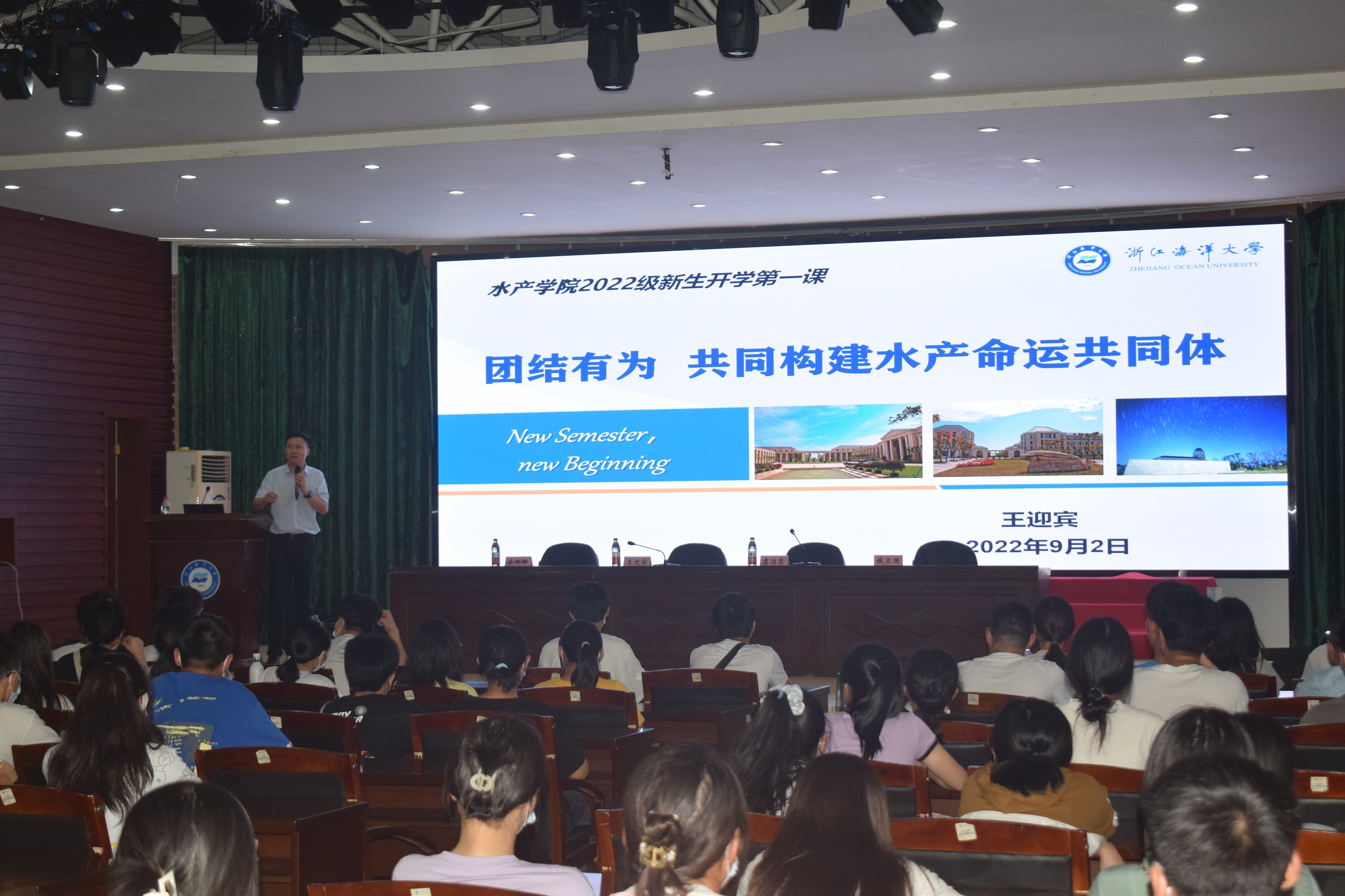 院长王迎宾在学校定海校区学生活动中心二楼报告厅为学院2022级新生讲授院长第一课。