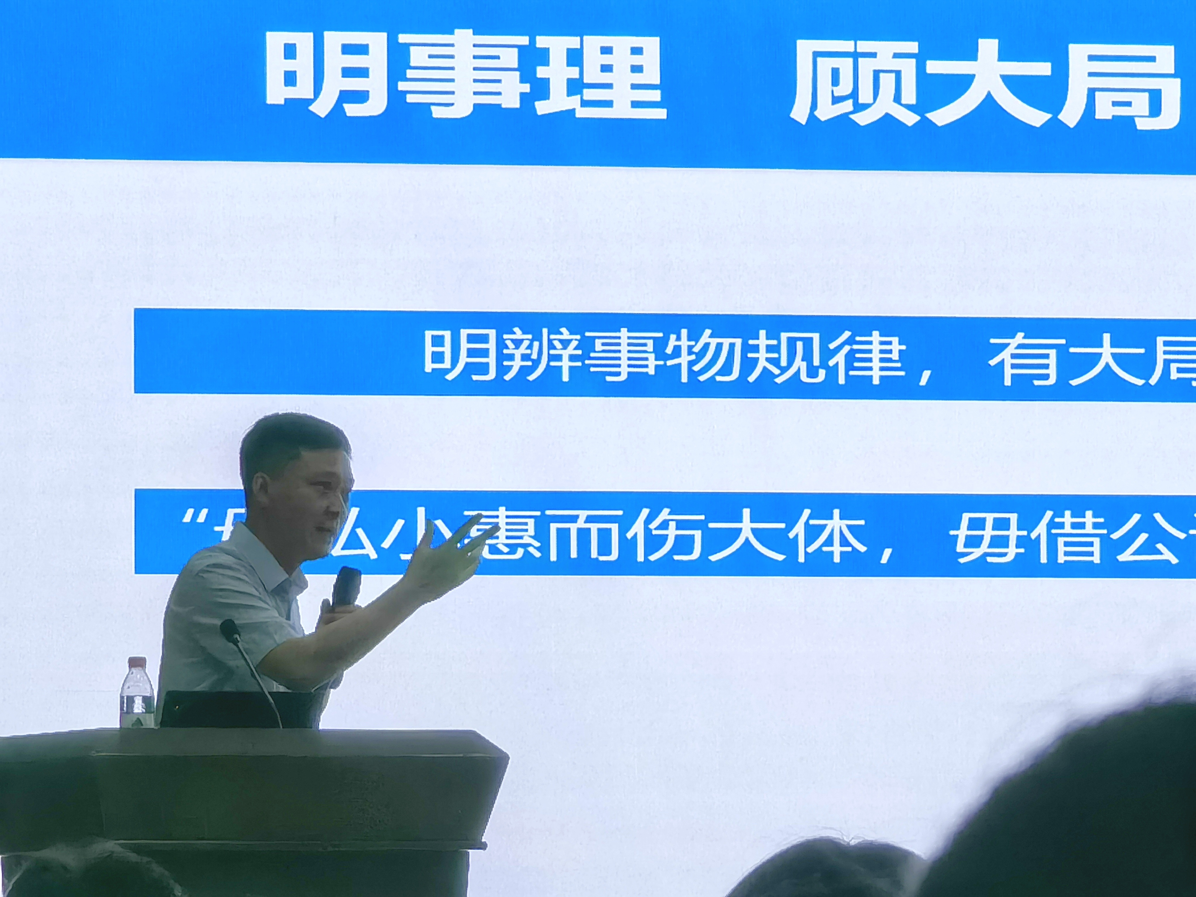 开始讲授时,王院长对“团结”“有为”“命运共同体”三个关键词进行了解释,强调“团结”才能“有为”,才能构建好学院的命运共同体,表达了学院领导对2022级新生加入的真挚欢迎以及对各位新生的美好期盼。