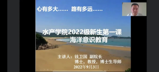 9月3日上午,中文av 通过线上举行新生始业教育之海洋意识教育第一课。本次讲座由学院副院长钱卫国主讲。