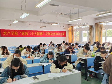 中国共产党,这个立志于“始终走在时代前列、人民衷心拥护、勇于自我革命、经得起各种风浪考验、朝气蓬勃的马克思主义执政党”,正带领亿万中华儿女奋进在伟大复兴的征程上!本次知识竞赛营造了以赛促学、以学促行的浓厚氛围,激发了水产青年比学赶超、创先争优的热情,切实将学习二十大精神转变为加快推进学院各项党建事业高质量发展的强大动力。