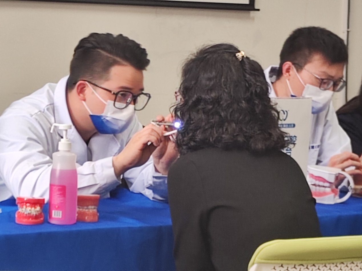在义诊开展过程中,医护人员为前来就诊的师生进行仔细的口腔健康检查,通过询问日常牙齿状况、帮助分析口腔问题,并根据他们的口腔问题给出针对性意见及治疗建议。此外,在场的专业医护人员还详细介绍了龋齿、牙周炎等常见口腔问题及防治方法,分享如何正确刷牙等口腔健康小常识。
