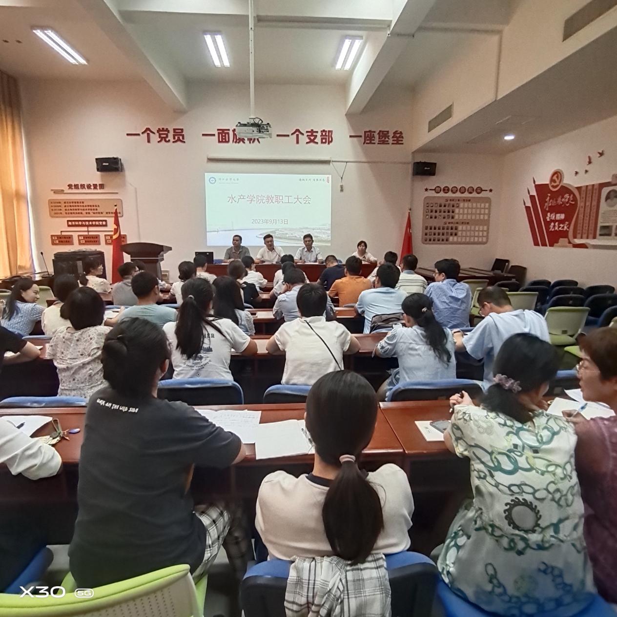 在海科楼141报告厅召开新学期教职工大会。学院党政领导和全院教职工参加会议,会议由院长王迎宾主持。