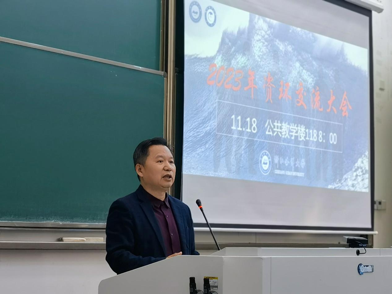 海洋资源与环境系在公共教学楼118教室举行了一年一度“资环专业大学生涯大讨论交流大会”,此次活动邀请了浙江绿生海洋环境科技(浙江)有限公司董事长鲍平勇、舟山市易硕智能科技有限公司总经理A04资环董龙华学长、舟山市生态环境局A03资环朱婧睿学姐等前来指导。会议由A21资环1班曹仁芬和A22资环2班孙意洋两位同学主持,系主任水柏年老师出席,2020级、2021级、2022级及2023级资环专业同学参加。