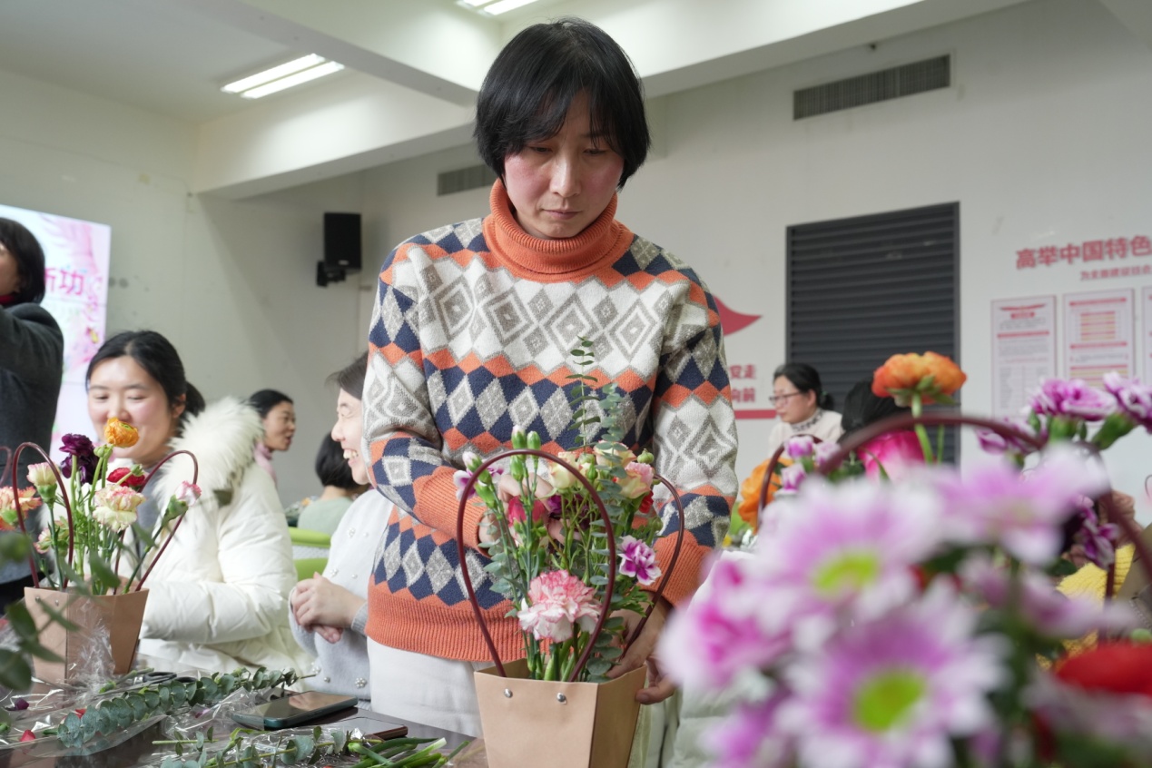 女老师们根据自己的喜好和审美,挑选着心仪的花材,修剪花枝,构思造型。有的老师喜欢清新淡雅的风格,选择了淡色的玫瑰和粉嫩的康乃馨;有的老师则偏爱热烈奔放的色彩,用艳丽的洋牡丹和娇艳的多头玫瑰打造出了充满活力的作品。大家脸上洋溢着如花般的笑容,互相分享着插花的技巧和心得。活动现场气氛热烈而温馨,芳香四溢,欢声笑语。她们将自己的生活感悟和个人审美融入花艺作品,让花艺作品独具匠心。这些作品或清丽淡雅,或热情奔放,充分展现了水产女老师们的才华和魅力。大家纷纷表示,这次活动不仅放松了身心,感受到了节日的快乐,还激发了她们的创造力和动手能力。