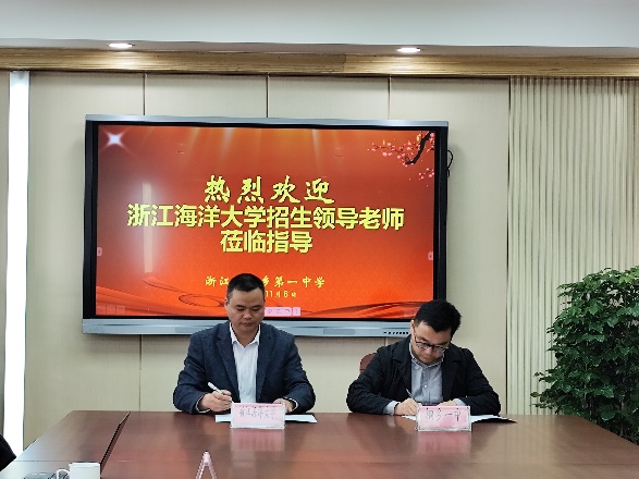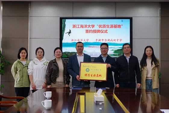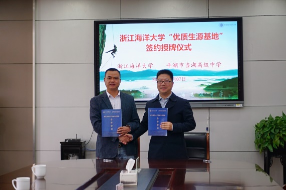11月7日下午,与平湖市当湖高级中学在明德楼会议室完成签约仪式。当湖中学秉持“严抓细管,互动发展”的办学理念,近4年累计输入浙海大生源数23人。党总支书记周爱民、副校长张忠明及双方相关教师代表出席了本次活动。