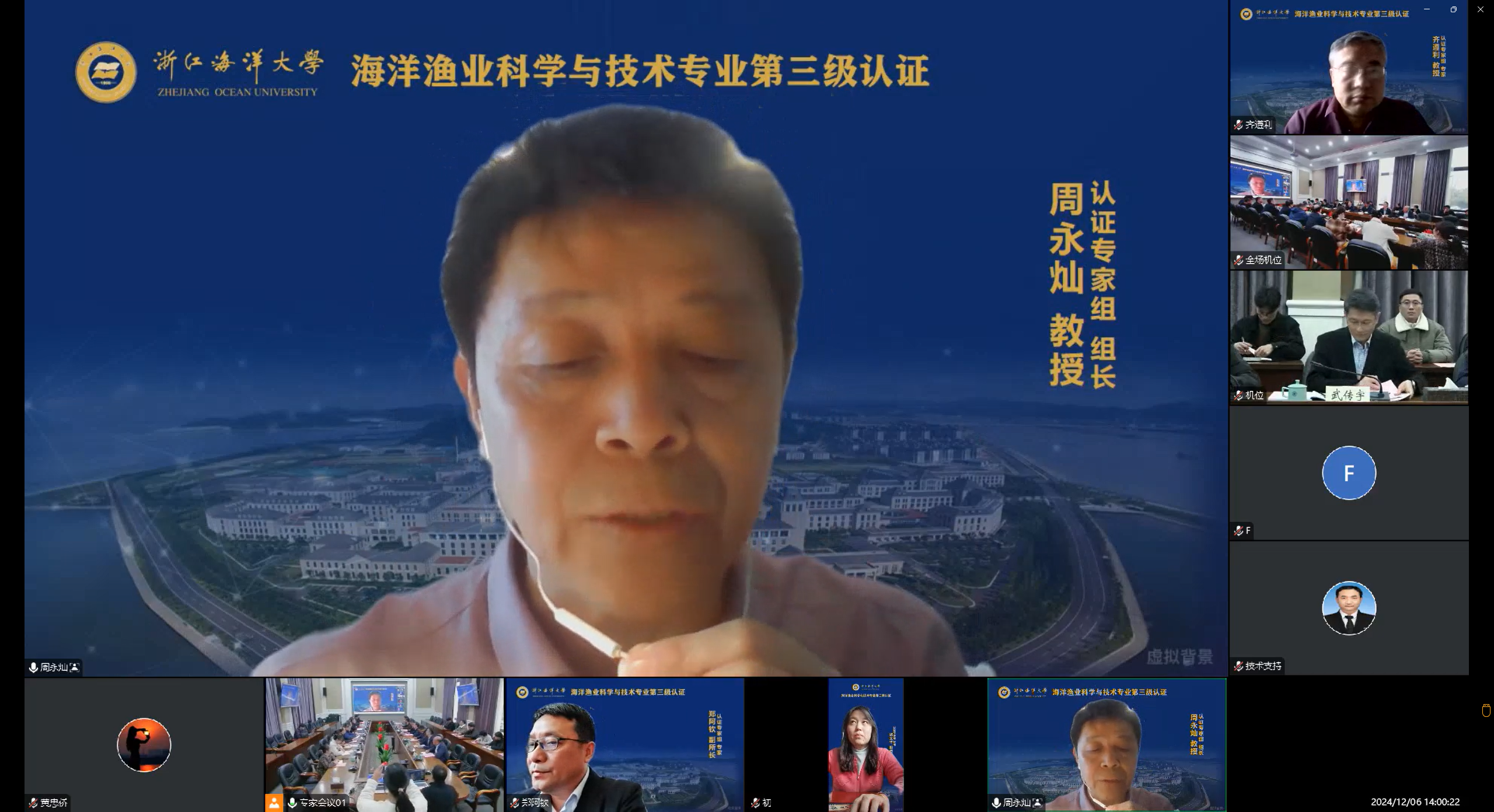 主要领导、海洋渔业系全体教师共同参加本次会议,聆听专家们对本次认证审查后的情况反馈。会议由专家组组长周永灿教授主持。