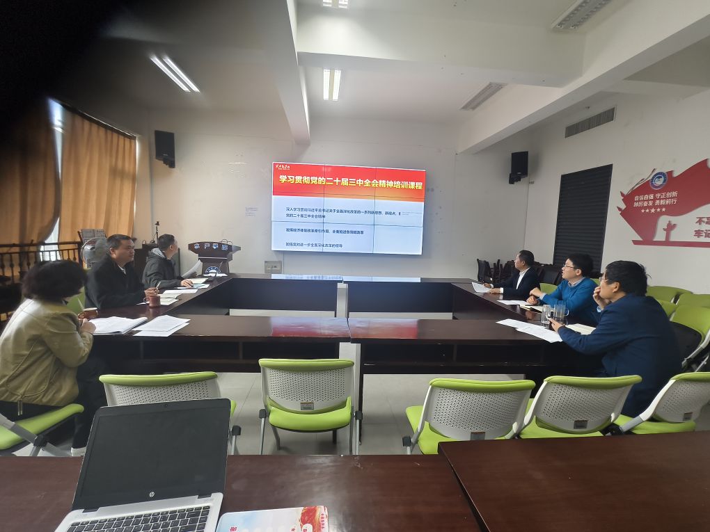 在海科楼263开展学院党政领导和科级及以下干部集中培训,学院党委书记薛利建强调,学院要以习近平新时代中国特色社会主义思想为指导,认真贯彻落实中央和省委关于学习贯彻党的二十届三中全会和精神的部署要求,扎实开展学习贯彻党的二十届三中全会精神培训
