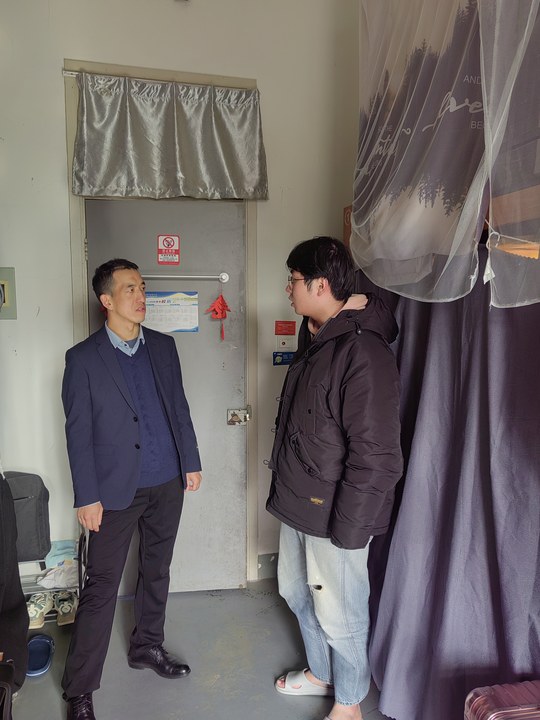 走访过程中,付宗国来到毕业班寝室向学生们强调了寒假安全问题,提醒学生们在假期要注意人身安全、用火用电安全。同时,付宗国关切地询问学生们就业打算,他表示学院高度重视毕业生就业工作,希望学生们能充分利用学院资源,积极就业。付宗国鼓励学生们结合自身专业优势和市场需求,制定合理的就业规划,为学生们提供切实有效的指导和帮助。