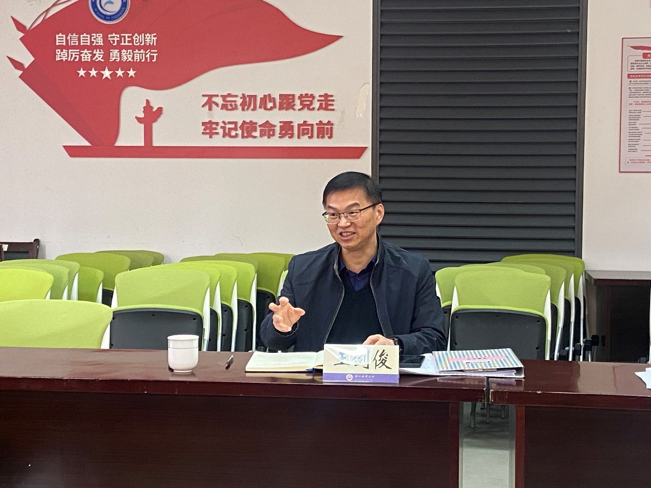党委在海科楼263室召开2024年度党员中层干部民主生活会。学校党委副书记王剑俊莅临指导,学院党员中层干部薛利建、韩志强、钱卫国、陶震、付宗国等出席,会议由学院党委书记薛利建主持。