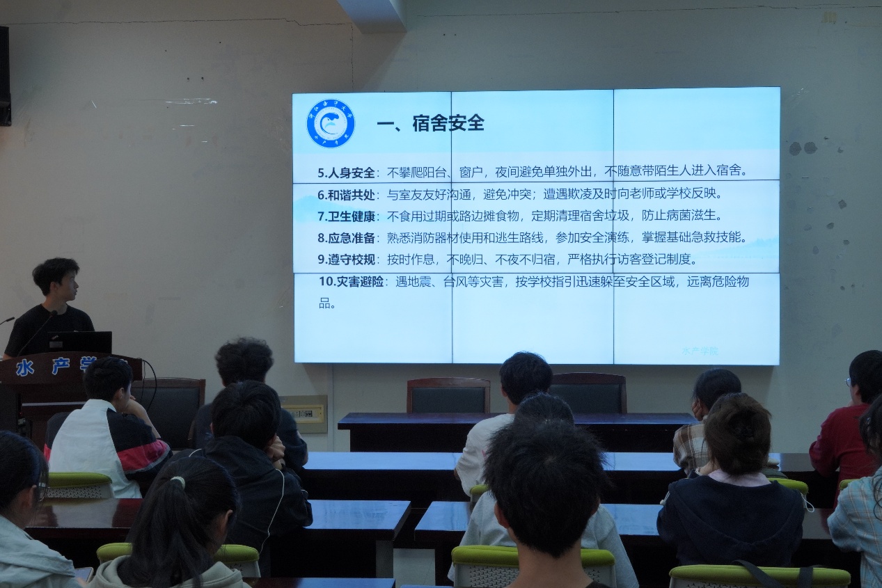 主持人丁鑫源则围绕防诈骗、毕业生安全教育、交通安全宣传月等几个主题为同学们作了详细的讲解与建议。