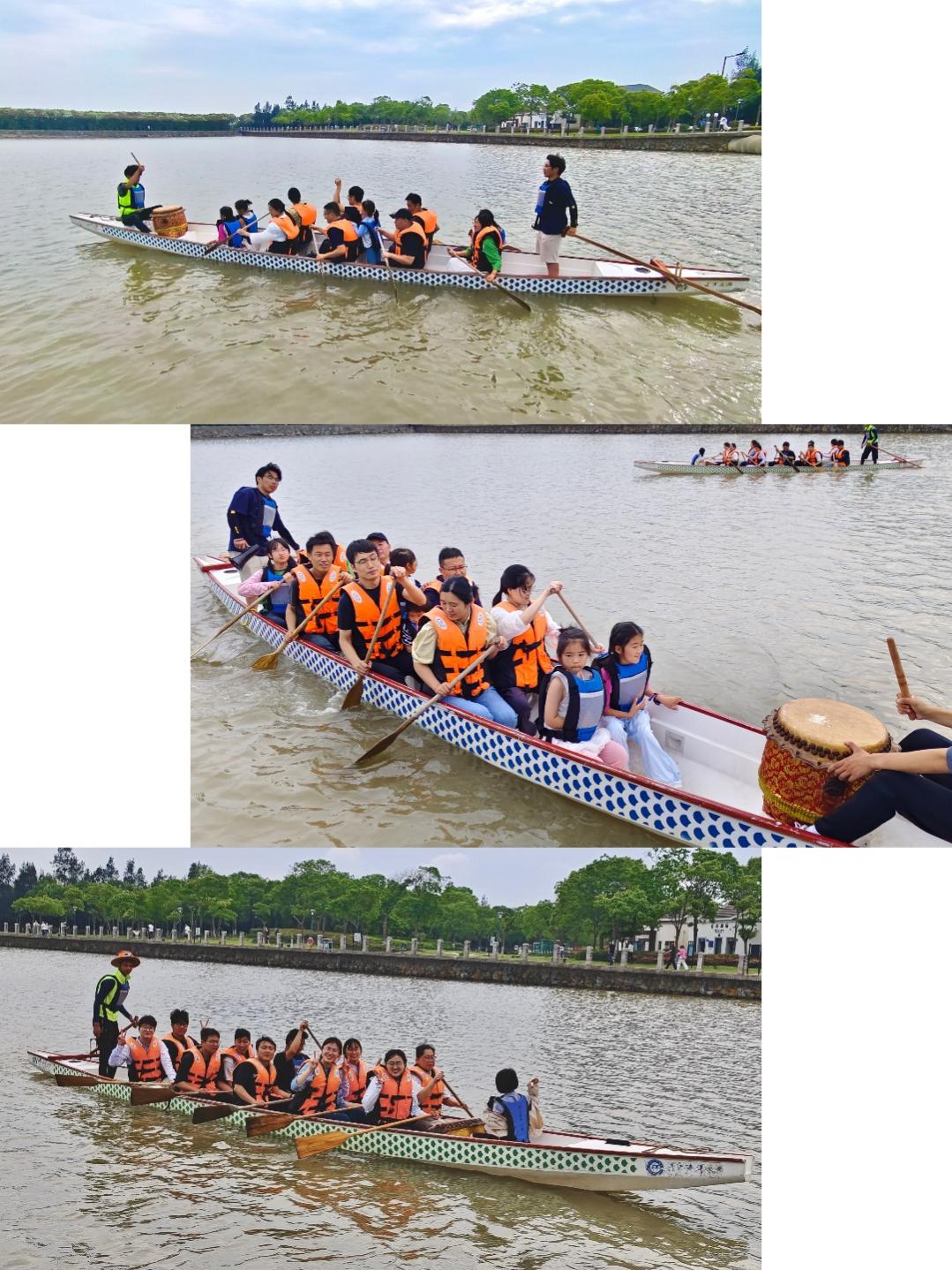 比赛结束后,讲解员又带领大家认识龙舟、讲解划龙舟的专业技巧与动作要领,并现场示范。随后,三支队伍依次整齐登舟。铿锵的鼓点声中,舵手全神贯注,稳稳掌控航向;长长的龙舟在桨手们整齐划一、如林桨影的合力驱动下,昂首破浪,奋勇前行。活动期间还组织了关于廉洁问答比赛,帮助师生深化理解廉洁知识。