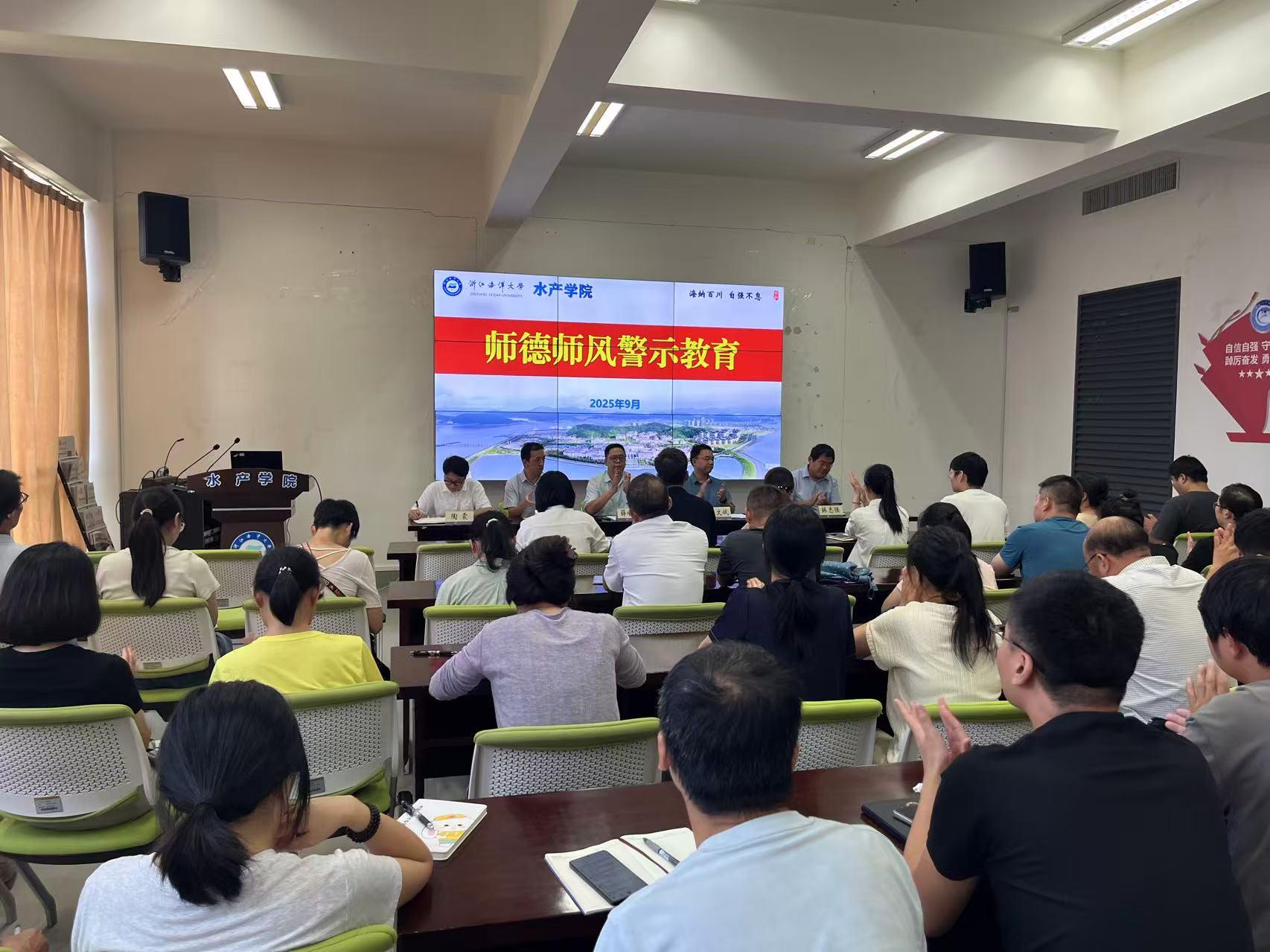 会上,党委书记薛利建强调,学校深化师德师风建设,实行师德失范“一票否决”。全院教职工要始终牢记为党育人、为国育才的初心使命,严格遵守《新时代高校教师职业行为十项准则》,严守纪律红线,守好廉洁思想阵地。