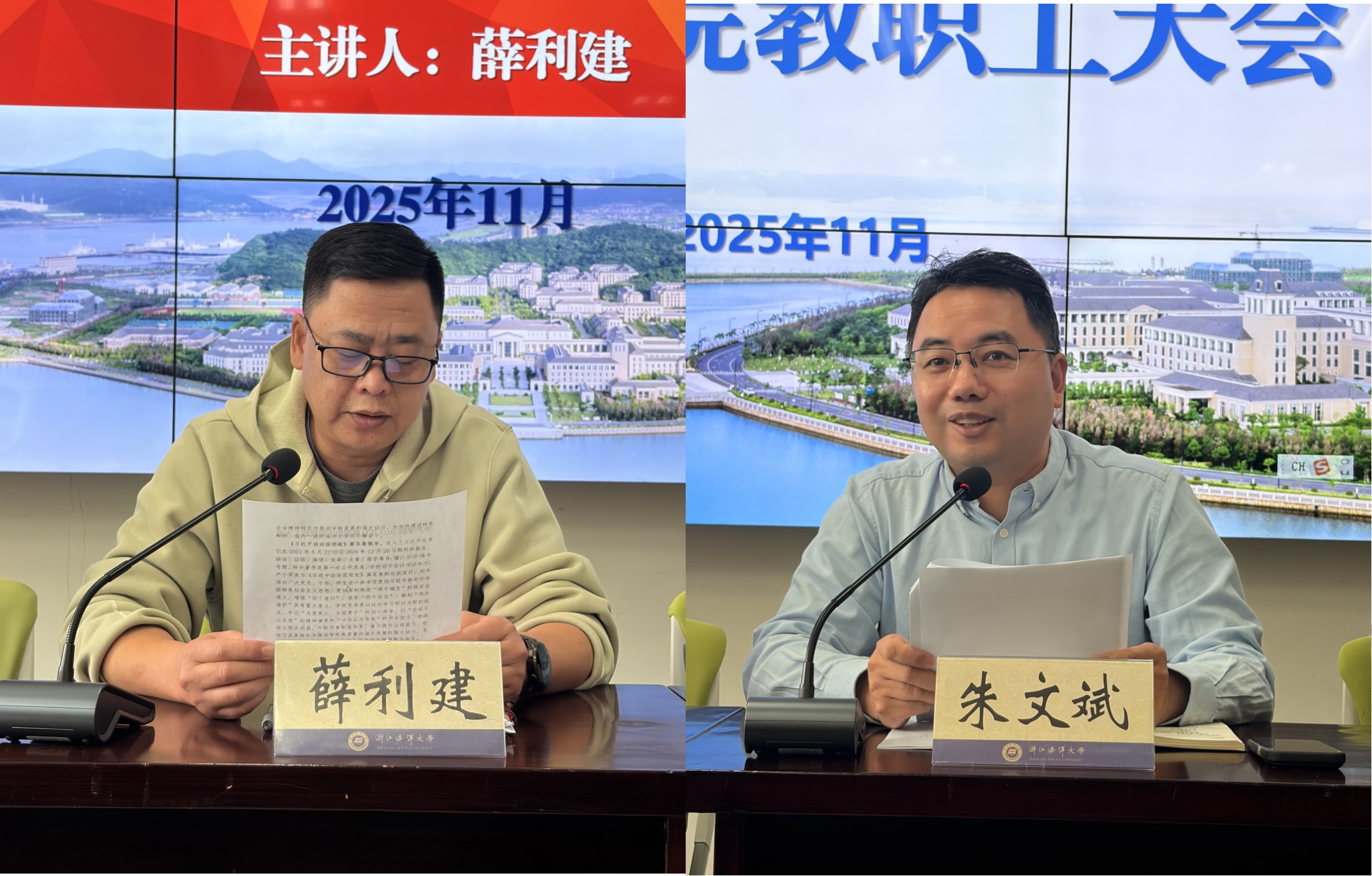 召开2025年秋季期中教职工大会。学院领导班子成员及全体教职工参加会议,会议由学院副院长(主持工作)朱文斌主持。