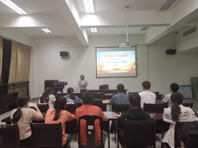 2019年10月24日晚,在海科楼263教工第二党支部书记徐娜娜以“守专业初心、建生态文明、做合格党员”为题,为研究生党支部、研究生团支部讲了一堂生动的主题教育党课。