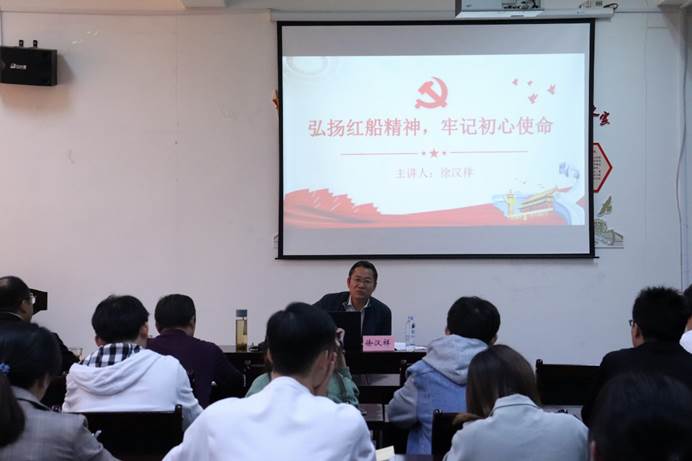 在党课讲授的过程中,徐汉祥副校长主要围绕“红船精神的理论定位和深刻内涵”与“传承红船精神、牢记初心使命”两个方面进行讲述。