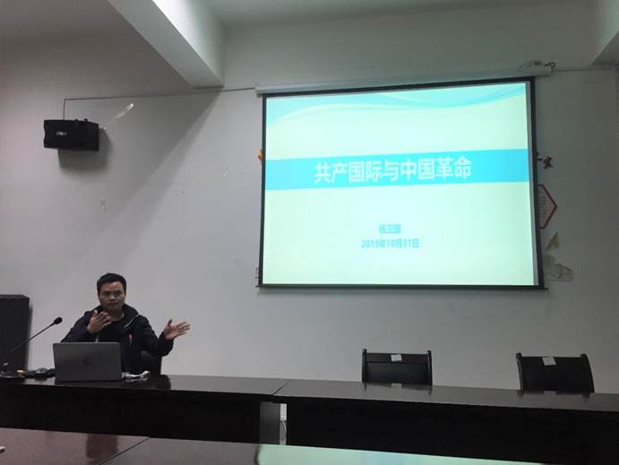 “不忘初心、牢记使命”主题教育工作要求,10月31日晚,学院副院长钱卫国教授于海科楼263报告厅为研究生党支部全体党员及入党积极分子以《共产国际与中国革命》为主题讲了一堂专题党课。他用激情的授课方式,生动地向全体同志阐释了共产国际对中国革命造成的影响,深刻解析了共产国际与中国革命的关系。