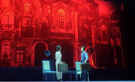 党委组织学院各支部党员,于杨存国1号报告厅观看大型现代红色越剧《黎明新娘》。