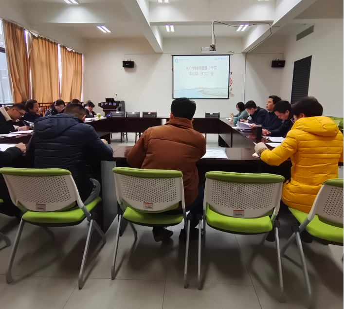 在海科楼263会议室召开党委理论学习中心组(扩大)会议。会议由学院党委副书记虞浩臣主持,学院党政班子成员和办公室、学工办、工会、团委负责人及各党支部书记参加会议。