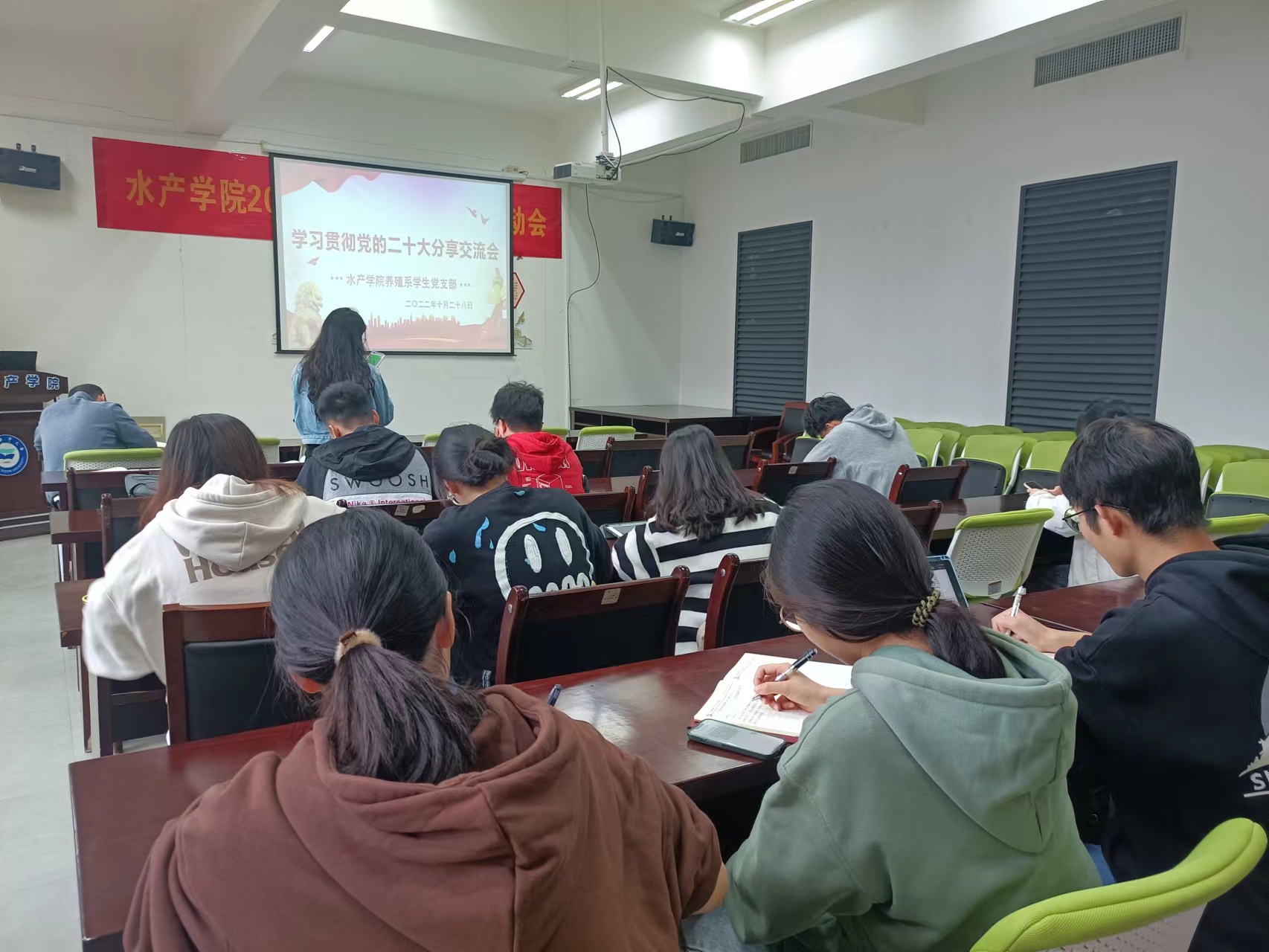 养殖系学生党支部第一时间组织党员认真聆听二十大报告,并通过撰写心得体会的形式交流学习体会。