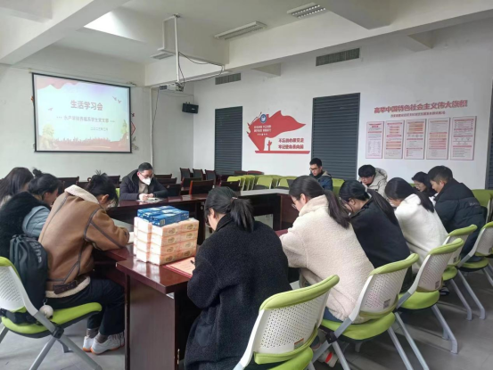 随后,支部书记徐双迪同志对2022年的支部工作做出总结。他表示,在过去的2022年,支部通过“三会一课”认真传达并学习党的二十大精神、二十届一中全会精神、《中国共产党章程(修正案)》等精神和文件。成功开展了“领风者系列主题宣讲活动”,宣传了身边的榜样,希望各位党员能够见贤思齐,在日常的学习生活中继续做领风者。此外,他也指出,在党建工作中还存在学习教育不够深入、深入红色教育基地等实地参观学习较少、个别党员没有将理论与实践相结合等的问题,需要在新一年中积极改进。