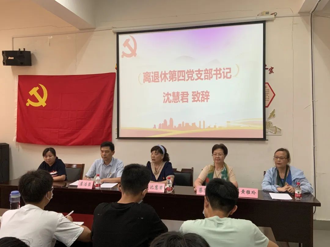 海渔系学生党支部书记林佳老师主持,出席会议的有离退休第四党支部书记、原人文学院党总支书记沈慧君老师,离退休第四党支部党员、原外国语学院院长蔡慧萍老师,离退休第四党支部宣传委员、原人文学院副教授黄雅玲老师和中文av