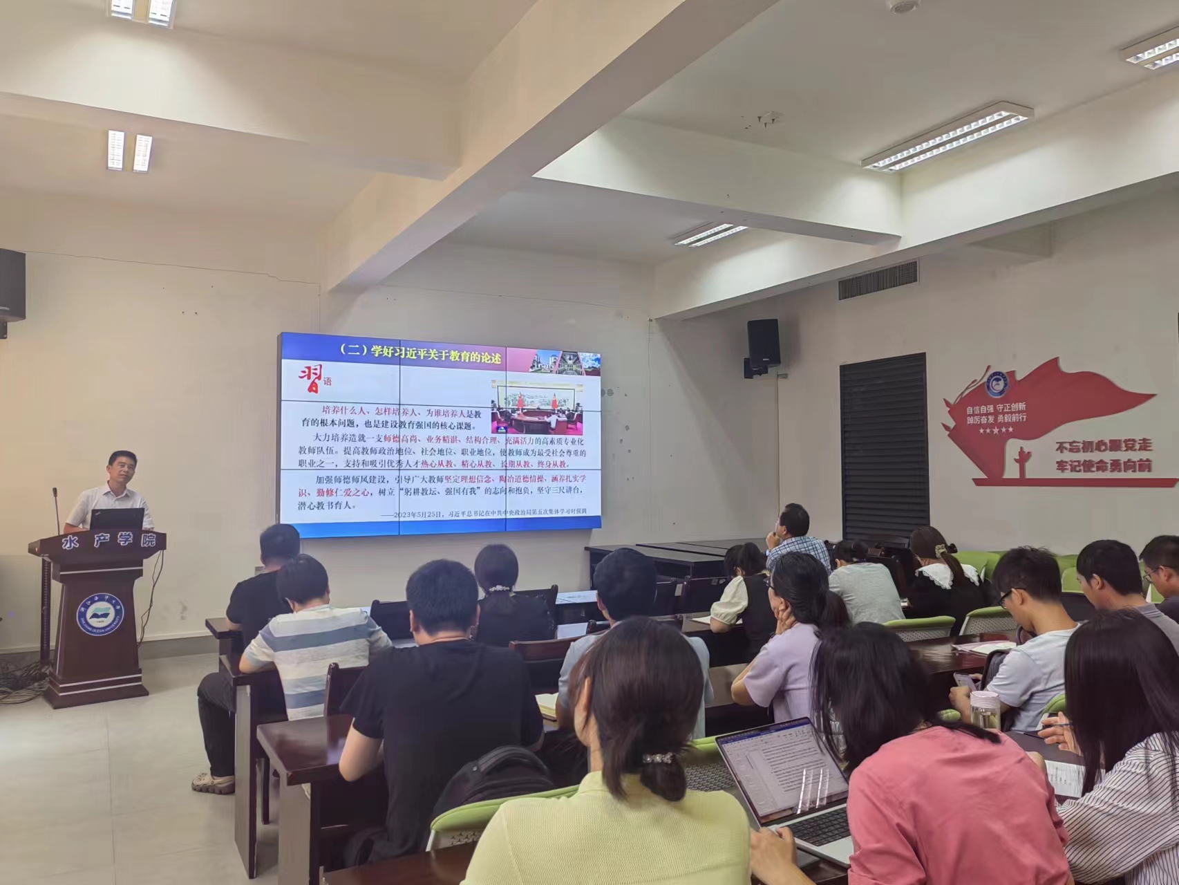 党委书记虞浩臣在海科楼263室为全院青年硕导讲授专题党课。