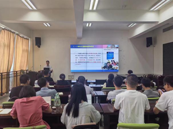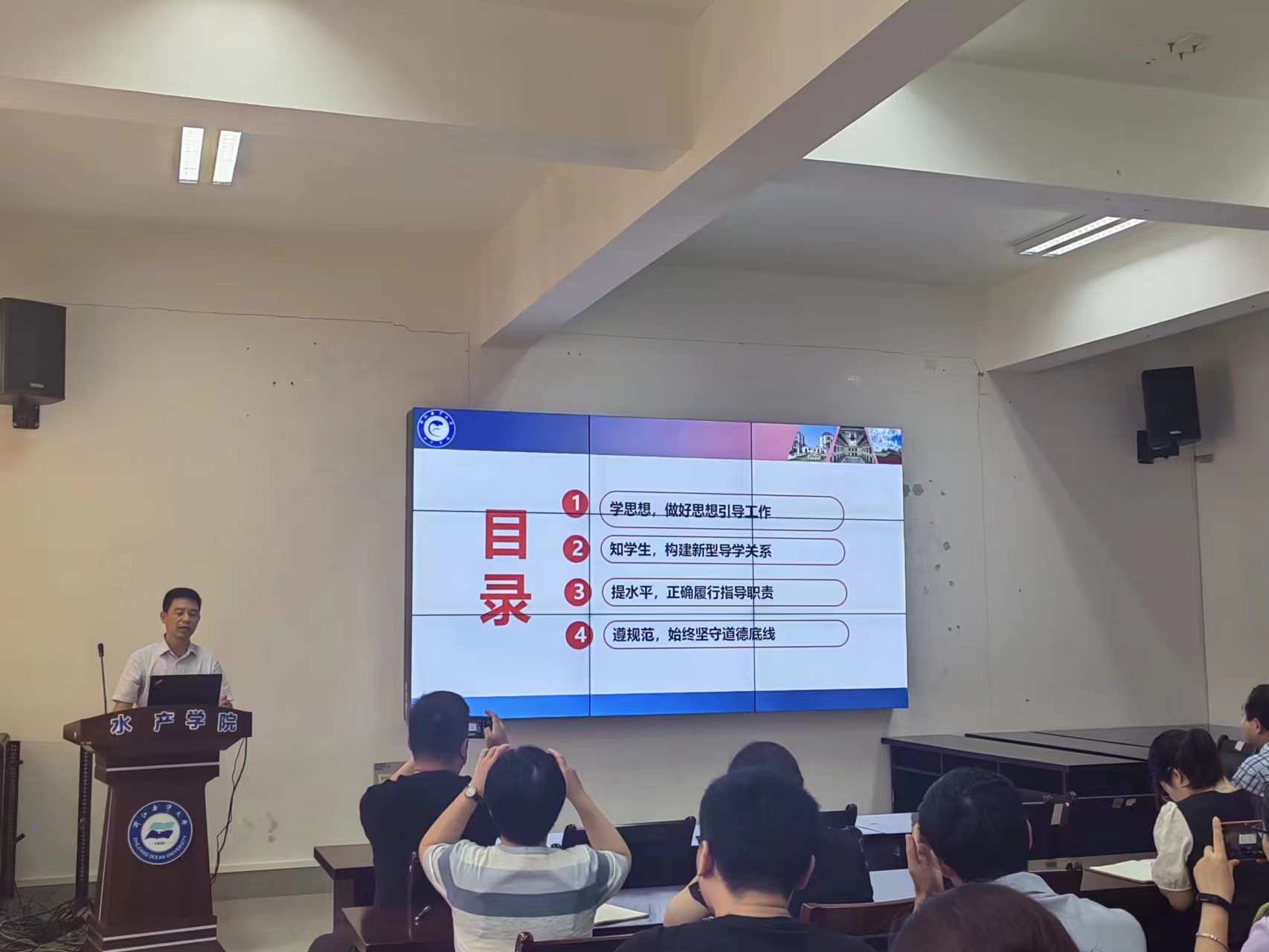 虞浩臣以“学思想 强师德 争做新时代好导师”为题,围绕“学思想,做好思想引导工作;知学生,构建新型导学关系;提水平,正确履行指导职责;遵规范,始终坚守道德底线”等四个方面内容进行了讲解交流。