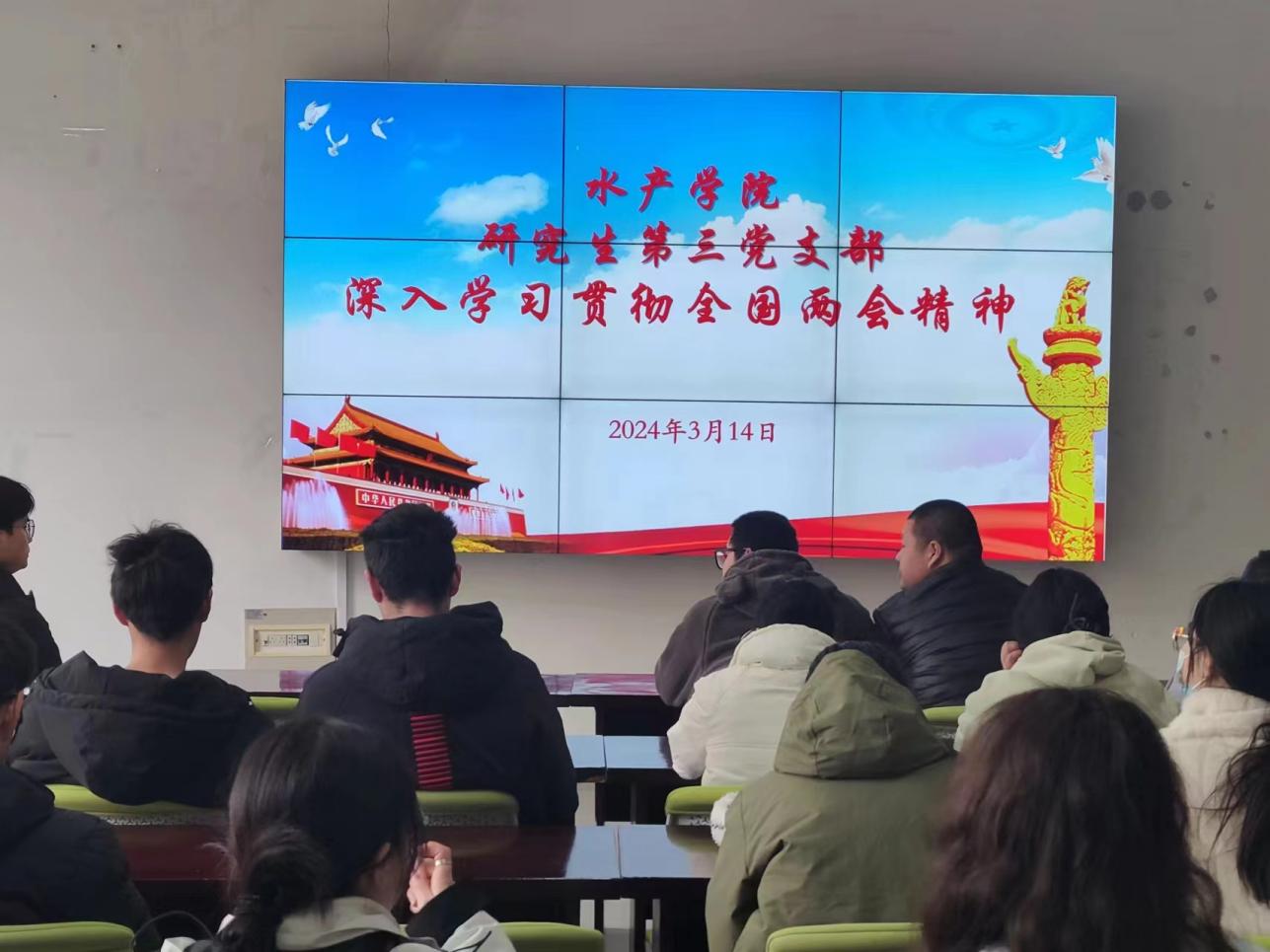研究生第三党支部于2024年3月14日在海科楼263组织全体党员集体学习,会议由党支部书记盛剑主持。