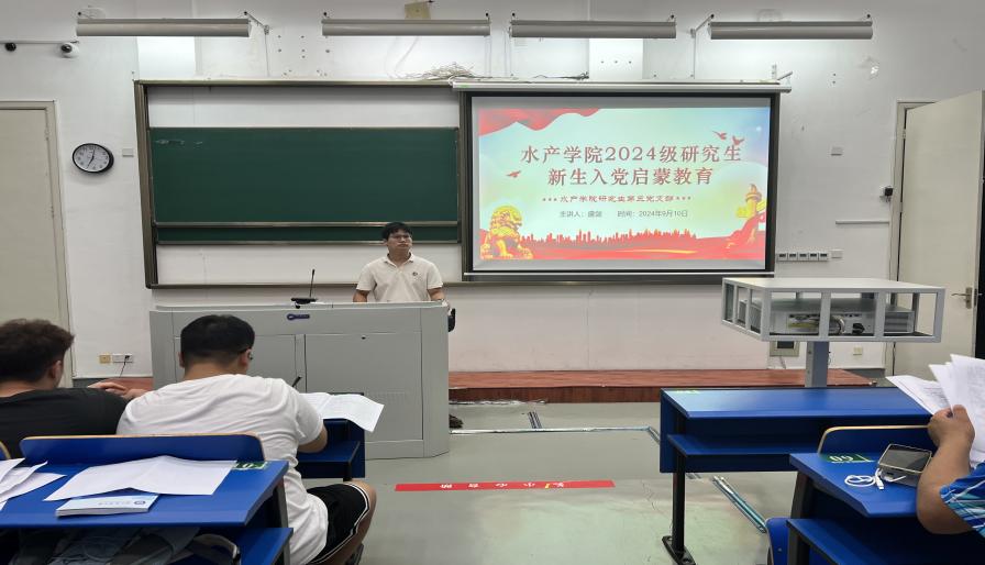 辅导员兼研究生第三党支部书记盛剑于9月10日下午4:00在公共教学楼119教室召开新生入党启蒙教育第一课,参会人员包括党员代表、2024级研究生新生共计130余人。