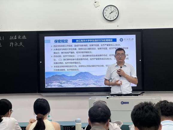 于9月17日下午组织各班级开展新生管理规章制度辅导与班委竞选活动,现场氛围庄重有序、成效显著。