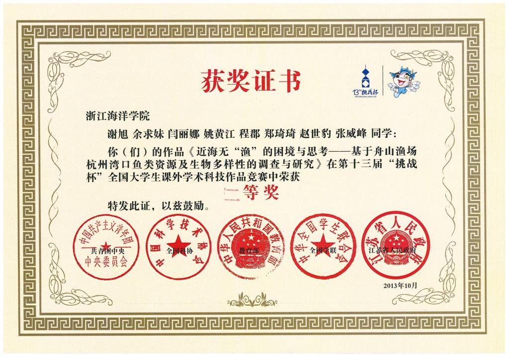 国家大学生挑战杯学科竞赛、浙江省大学生挑战杯学科竞赛、浙江省大学生海洋知识竞赛、全国英语竞赛、全国英语演讲比赛、浙江省数学建模竞赛、浙江省大学生物理竞赛等。