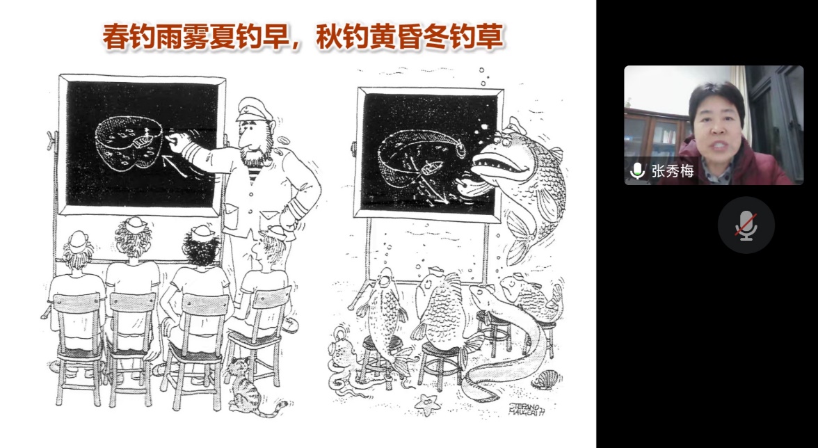 开篇以文会友,用“春钓雨雾夏钓早,秋钓黄昏冬钓草”引出由现代到20世纪各大生物行为学研究前沿。从首次验证鱼类非色盲的慕尼黑大学动物学家弗里希(Karl von Frisch,1886-1982)到首次提出鸟类印记行为(Imprinting)的美国哥伦比亚大学动物学家洛伦兹(Konrad Lorenz,1903-1989),从研究动物行为学因果、成长、机制、演化的英籍荷兰动物行为学家廷伯根(N.Tinbergen,1907-1988)到20世纪在生物行为学分子层面孜孜以求的诺贝尔生物学获得者。大家荟萃云集,让学生们感受到生物的智慧之光。