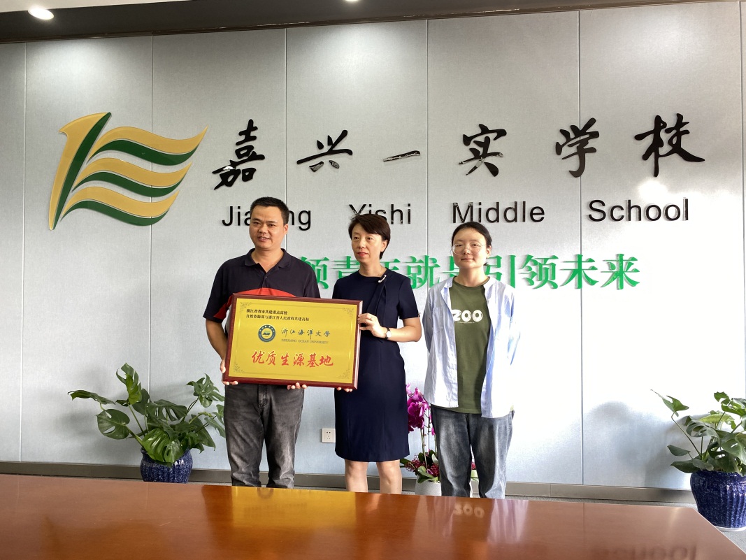 2023年10月11日,中文av 委托中文av 副院长钱卫国与嘉兴一实中学进行优质生源地签约、授牌仪式。