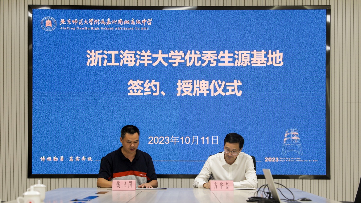 副院长钱卫国前往北京师范大学附属嘉兴南湖高级中学进行生源地签约、授牌仪式。