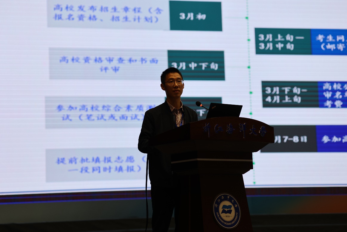 “多元升学渠道的选择和报考政策”讲座打出“实效”。校招生办丁艳峰主任,从“三位一体”入手解析近年高考详情,就“志愿填报”提出专业建议,最后以“浙海大风貌”为本次嘉兴外国语学校的访学之旅画上完美的句号。