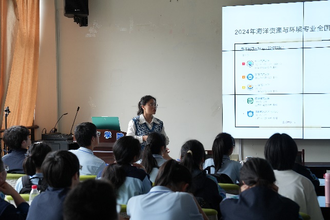 专业老师齐上阵,春风化雨,循循善诱,收获满满。学院邀请海洋渔业科学与技术专业负责人钱卫国教授、海洋资源与环境专业专任教师朱静敏副教授、水产养殖学专业专任教师赵波副教授、水族科学与技术专业专任教师封文萍博士为47位致力于选学生物、物理、化学科目的同学讲解相关专业发展方向、培养目标、研究内容、科研实践以及就业升学等。
